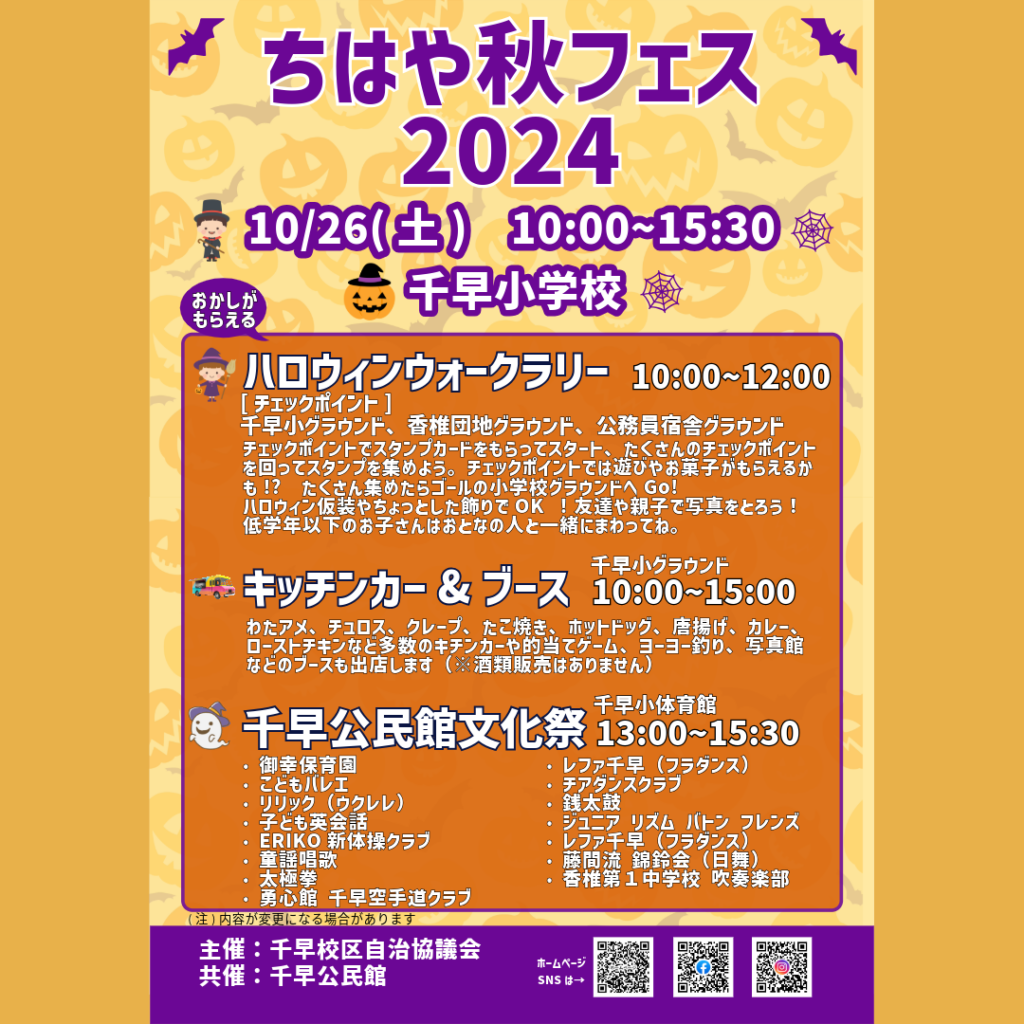 来週10/26(土)はちはや秋フェス2024を開催します。