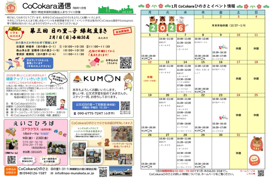 開催予定等は、CoCokara通信やホームページ、インスタグラムでお知らせします。