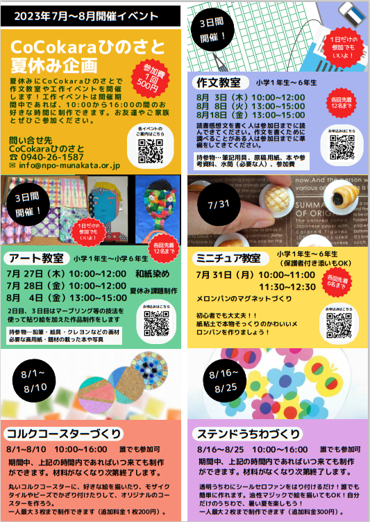 夏休み期間中に、子ども達のためのイベントを開催いたします。