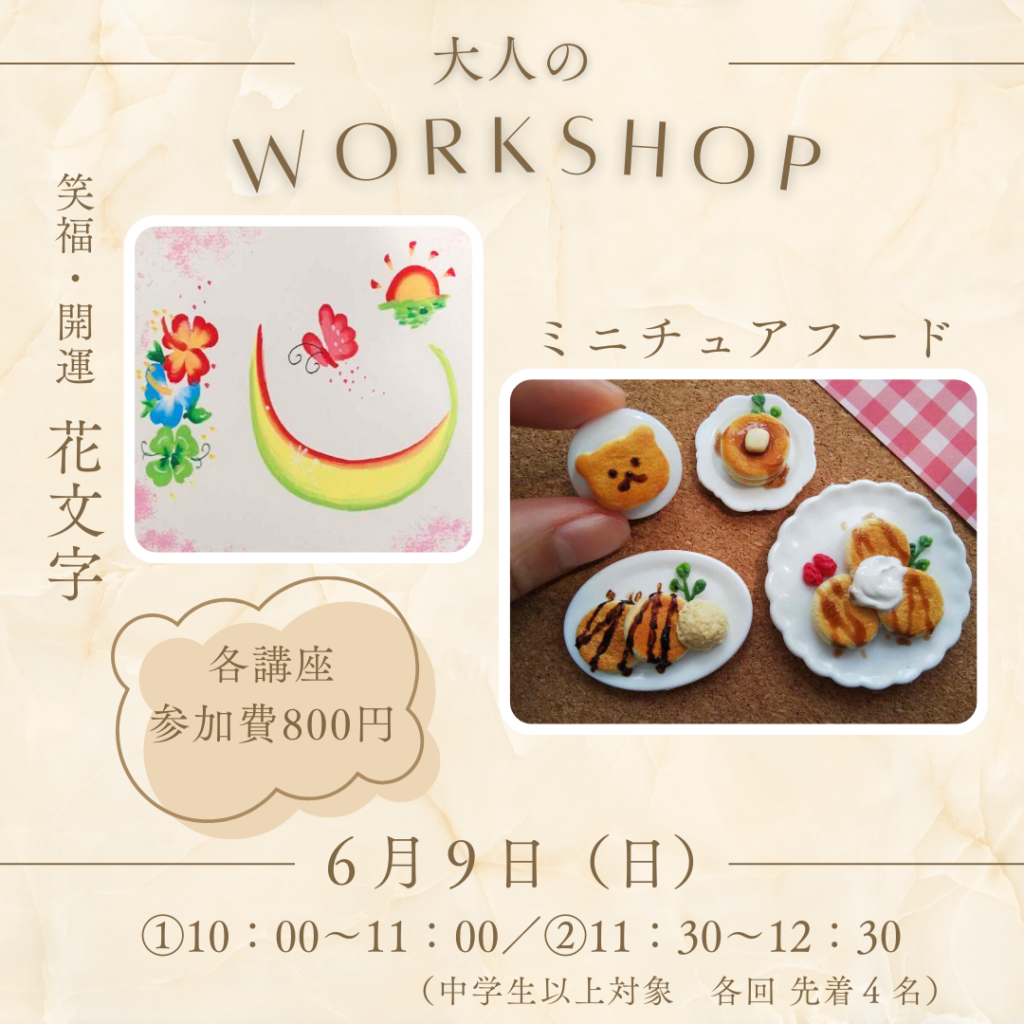 「笑福・開運 花文字」と「ミニチュアフード」の2本立てでワークショップを行います!