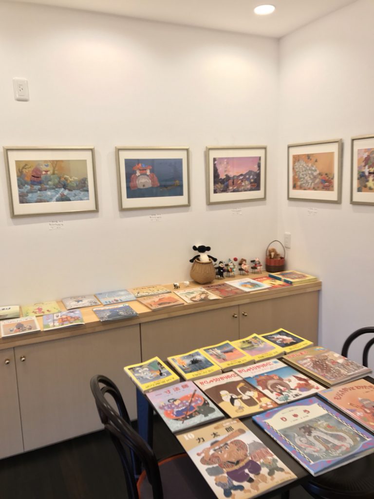 豊かな自然とおしゃれな庭がある古民家の美しい建物。入館料300円を払い中へ入るとたくさんの原画が飾られていて、絵本も置いてあり手に取って読むことができます。