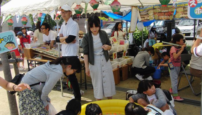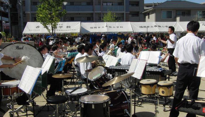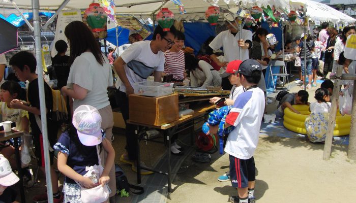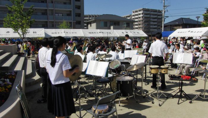地域団体や学校の演奏、ダンスなどが披露され、バザーや軽食販売も行われ今では夏祭り、灯明まつりに並ぶ、校区のお祭りの一つになっています。