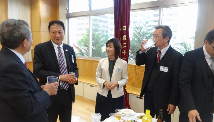 平成31年香椎校区新春交歓会開催さる 2019/1/24 イベント情報, 新着情報, 部会・団体活動報告 1月13日(日)香椎校区新春交歓会が開催されました。 東区役所所長、衆議院議員、県議会議員、市議会議員、地域の学校関係や諸団体、各町内会、各種団体から総勢110余人が集まり、新春を祝い、親睦を深め合いました。