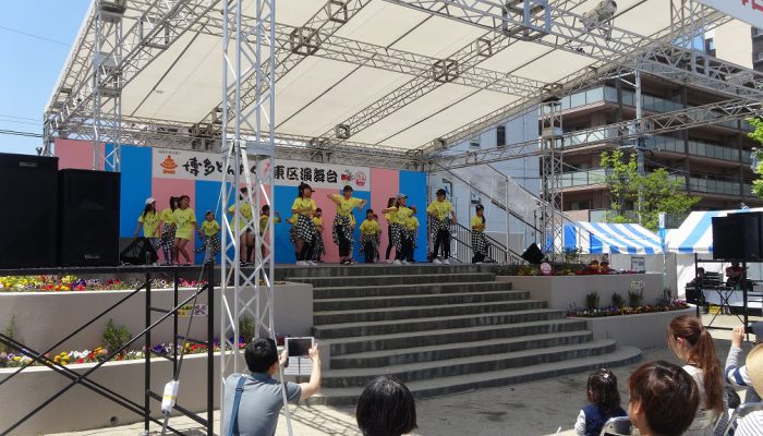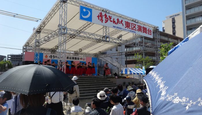 ゴールデンウイーク10連休のまっただ中、5月3日・4日の2日間、香椎駅前西公園にて「博多どんたく港まつり東区演舞台」が開催されました。