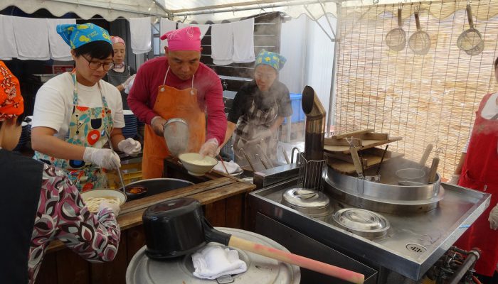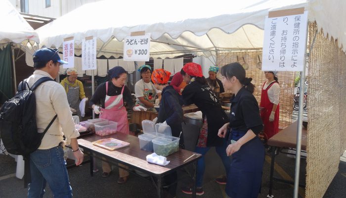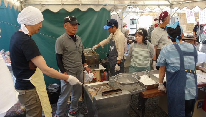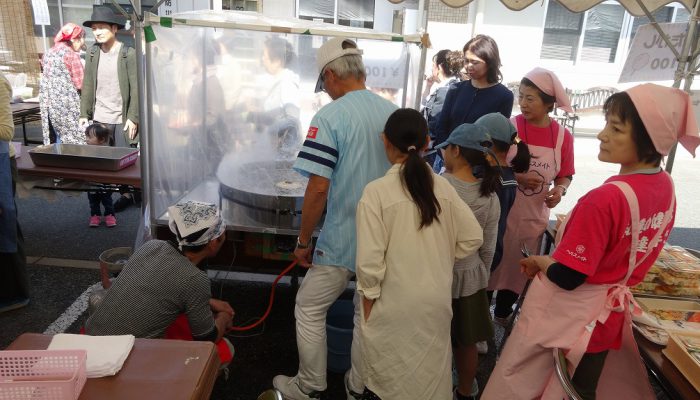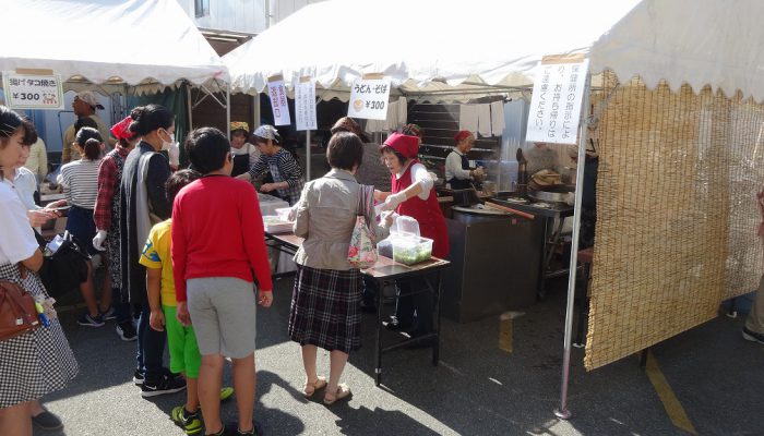 公民館サークルの皆様の日頃の活動のお披露目の場として、三日間にわたって作品展示、芸能発表が行われました。あわせて、駐車場では食のバザーのうどん・そばや、綿菓子などが販売され、多くの人で賑っていました。