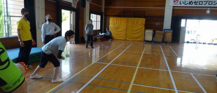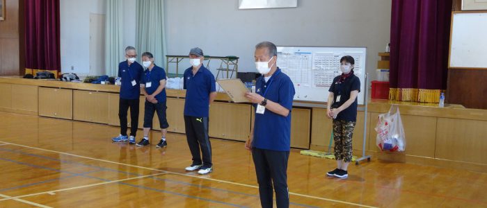 体育協会の役員から種目ごとの説明の後、5団体(自治協役員、町会連、子育連、体協、香椎小・小P))10チームで大会が始まりました。