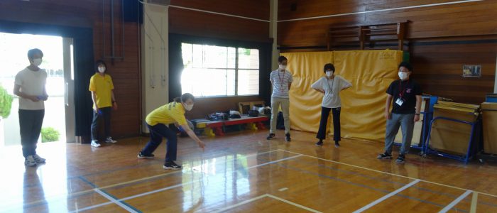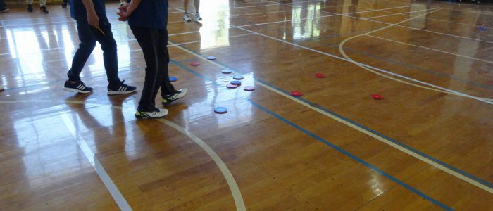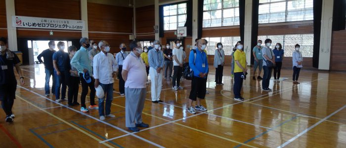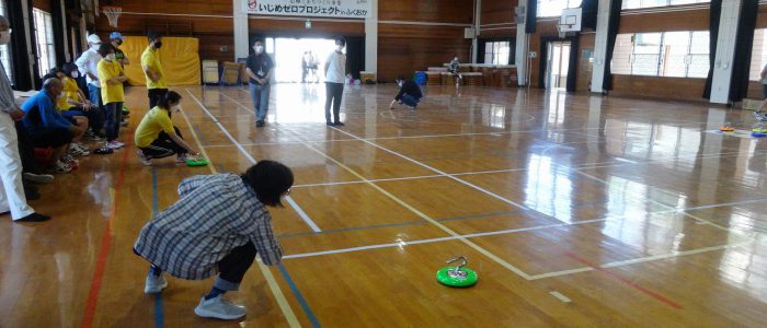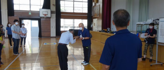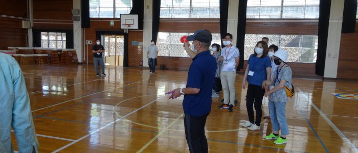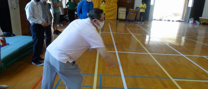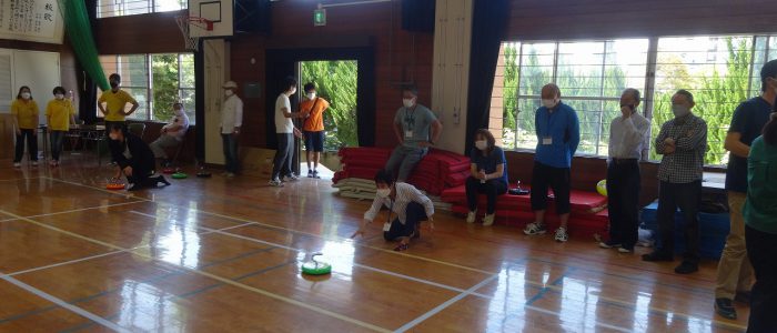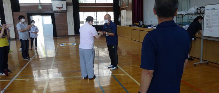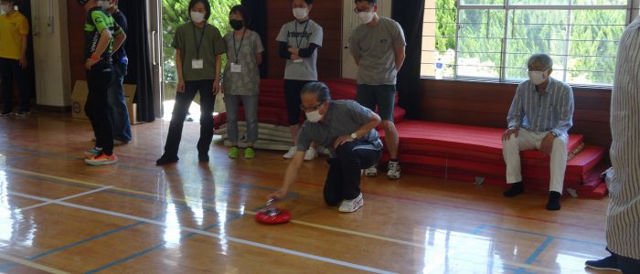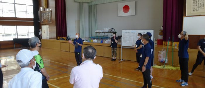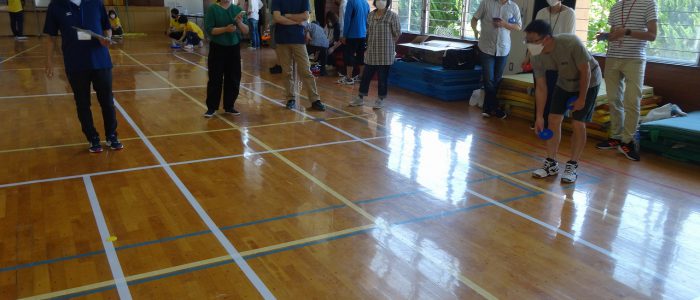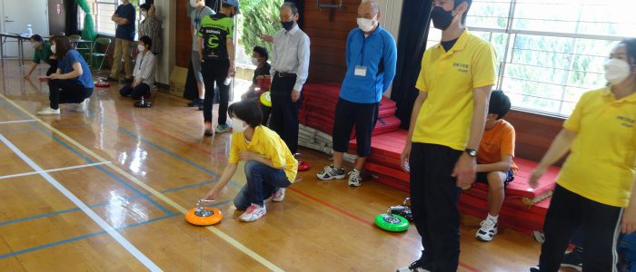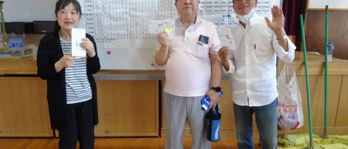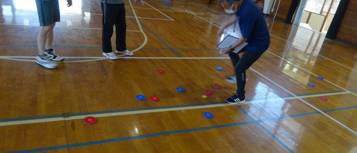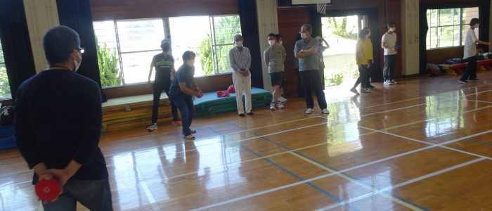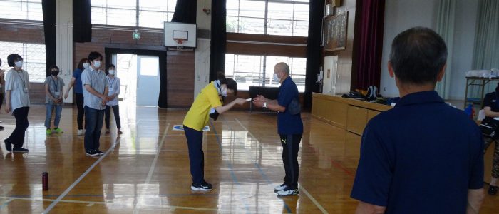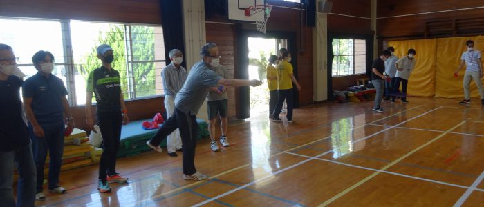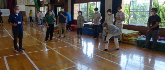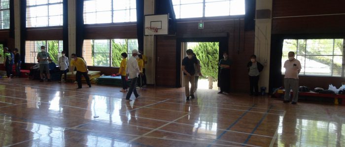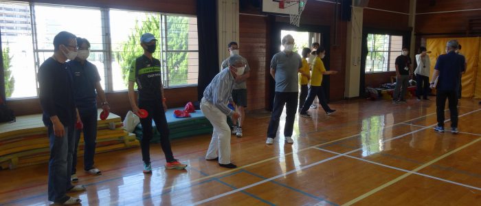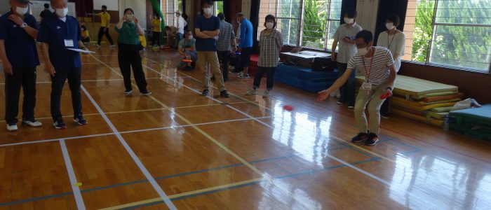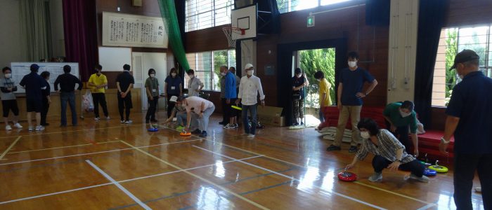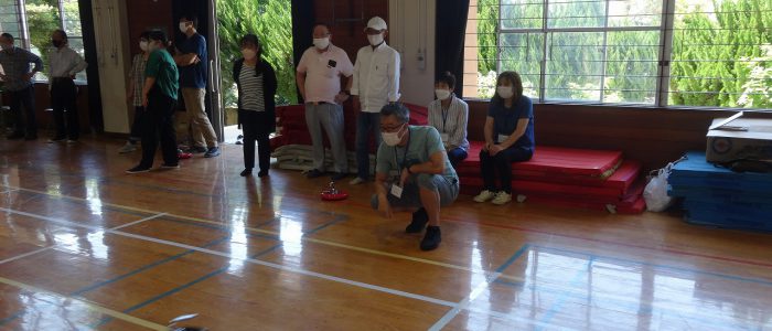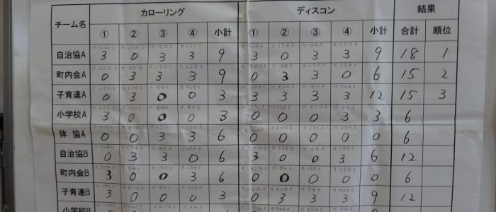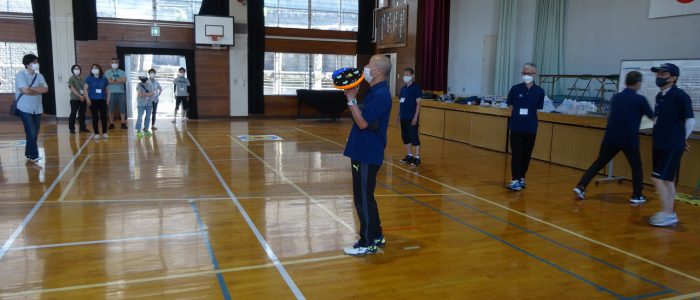 久しぶりの校区行事ということで、和気あいあいとした雰囲気の中で競技は進み、自治協議会役員Aチームが優勝しました。次点は4チームが同点だったので2位・3位決定戦を行い、ディスコンのディスクが目標に近い順に、準優勝:町内会連合会Aチーム、3位:子ども会育成連合会Aチームという結果となりました。