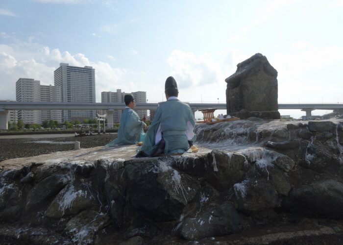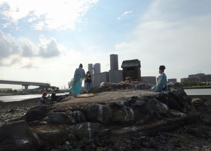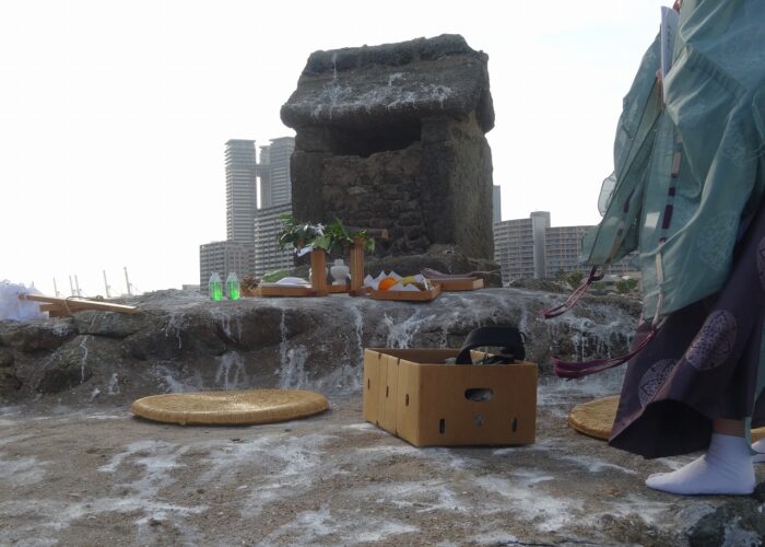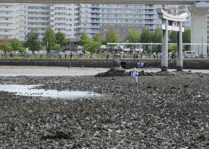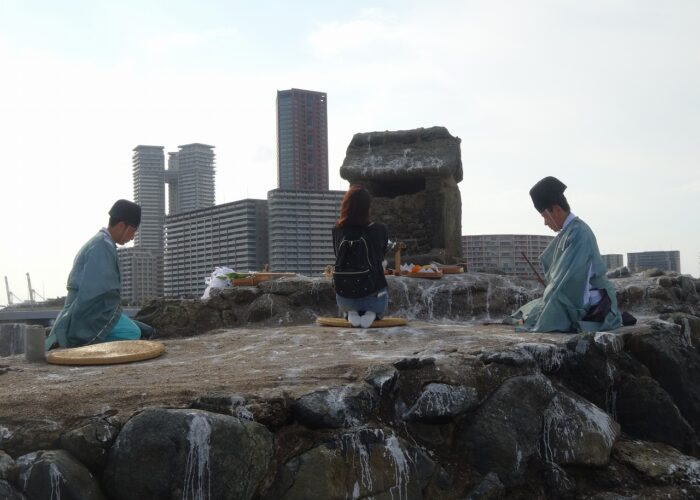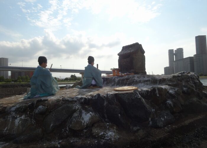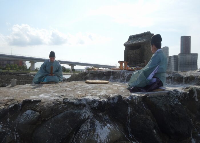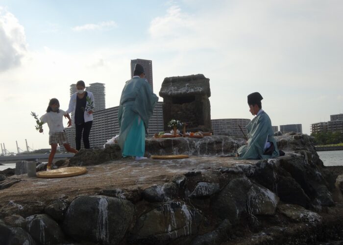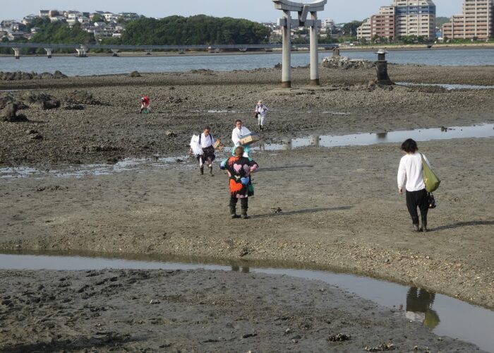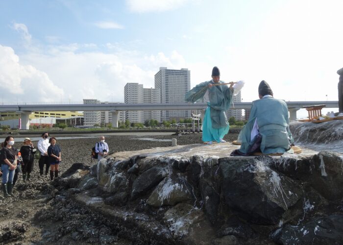 9月10日に執り行われました。香椎潟に鎮座する神社まで、干潮時とはいえ、足が抜けなくなるほどのヘドロに苦戦しながらたどり着きました。参拝者も年々増え、遊歩道からも多くの方々が見守っておられました。