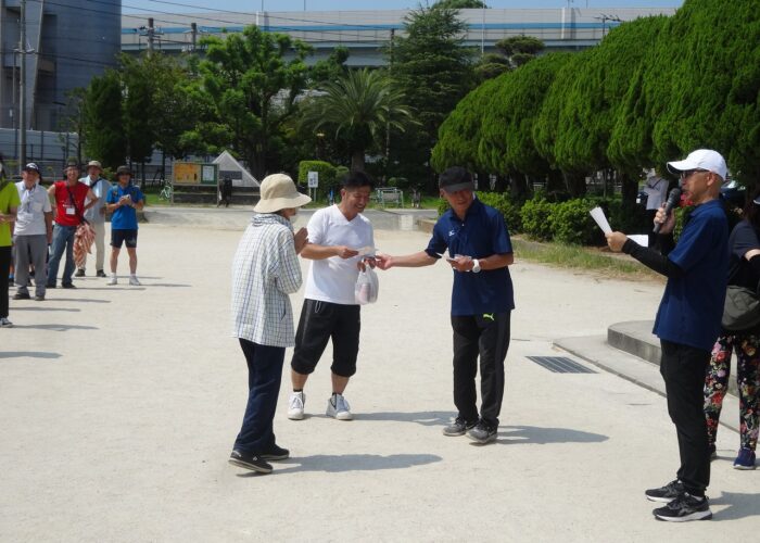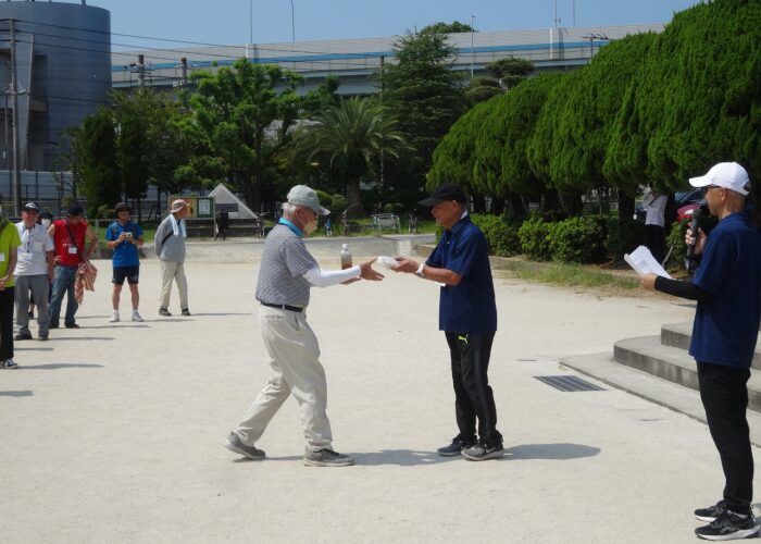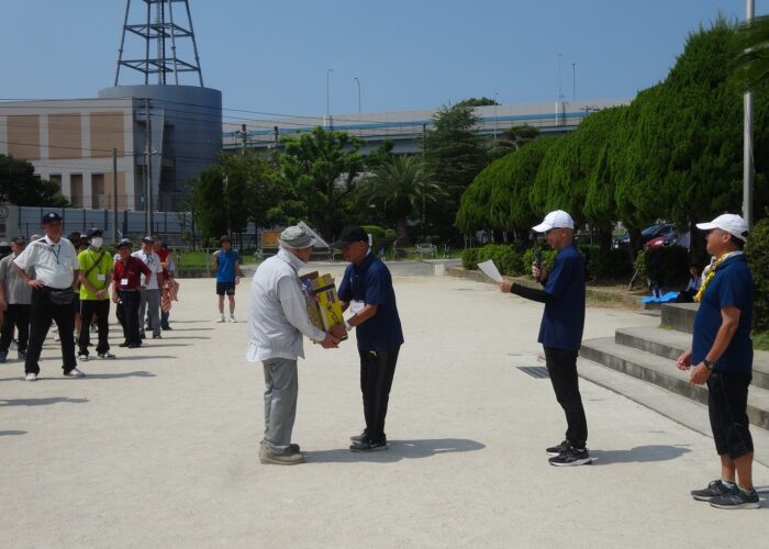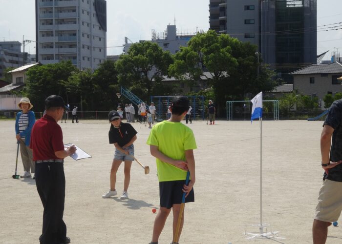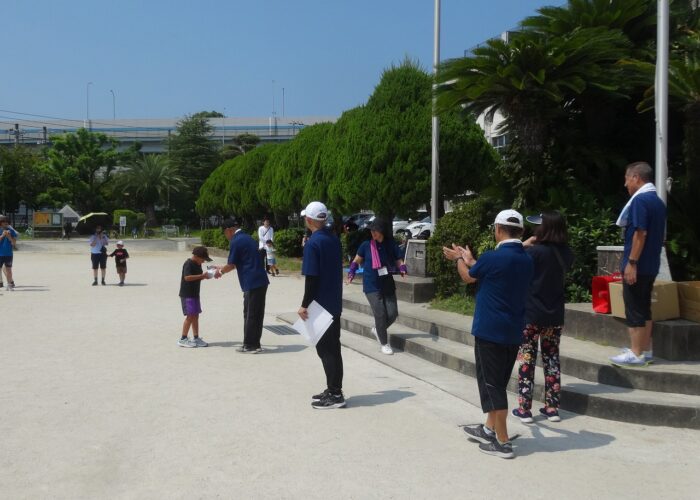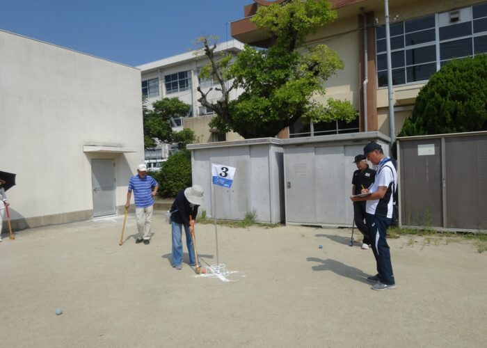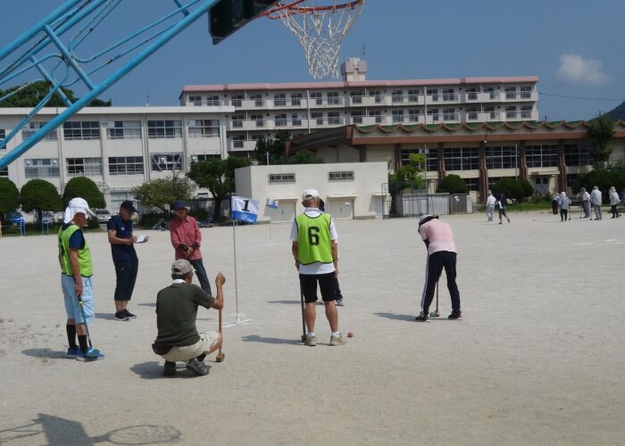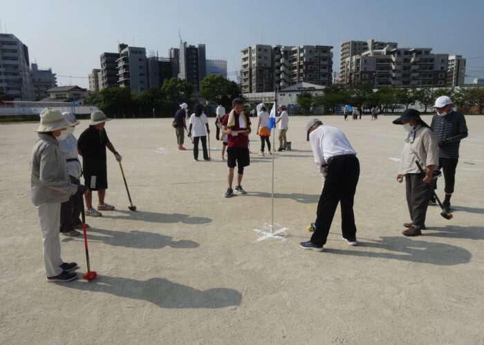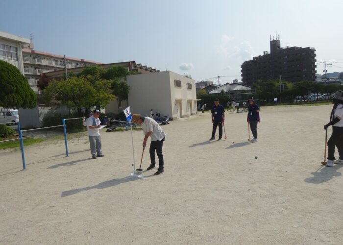 9月10日(日)好天に恵まれ、香椎校区体育協会主催 第31回香椎校区グランドゴルフ大会がファミリーの部(小学生と中学生以上の男女)4チーム、フリーの部(20歳以上の男女)8チーム、総勢72名にて開催されました。あちこちでホールインワンの歓声やゴールを突き抜けて落胆の声が聞こえ、和気あいあいな雰囲気の中で競技は行われました。結果は、ファミリーの部:駅東1-1Bチーム、フリーの部:駅東2丁目Aチームがそれぞれ優勝し、東区大会にはフリーの部の駅東1-1Bチームが参加、ファミリーの部優勝チームは当日、香椎小学校の運動会と重なり辞退することになりました。
