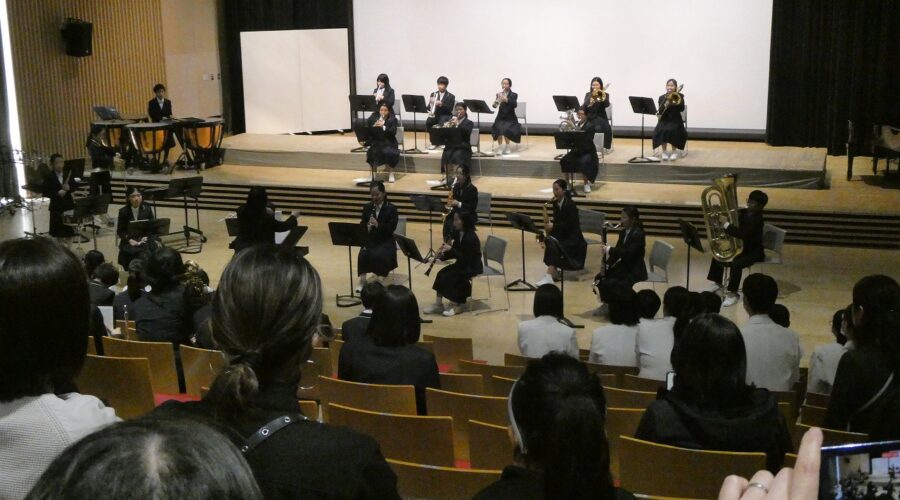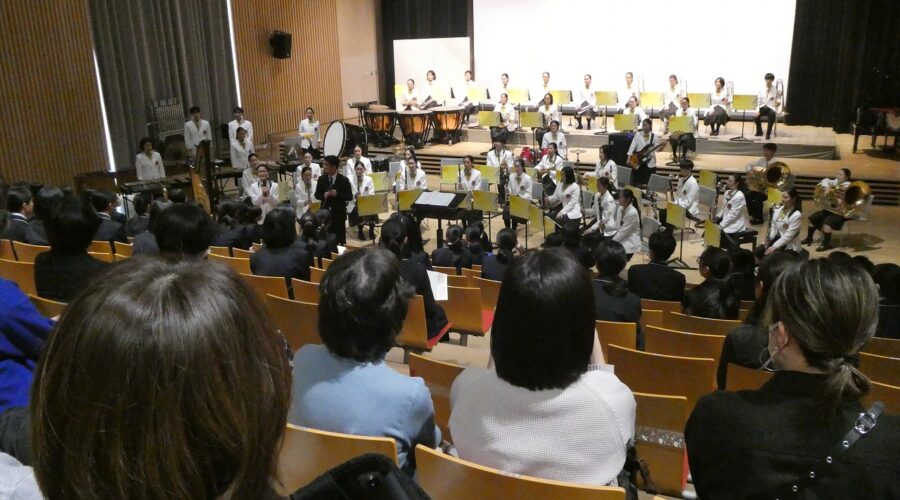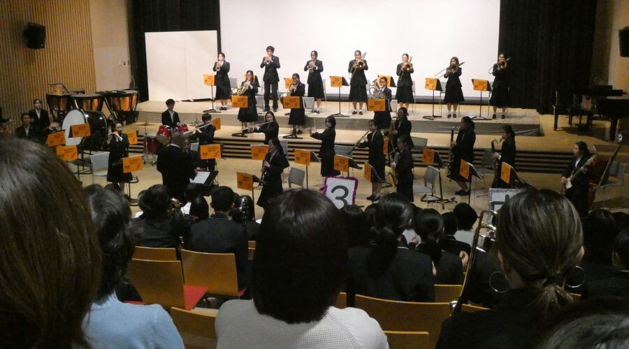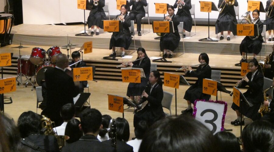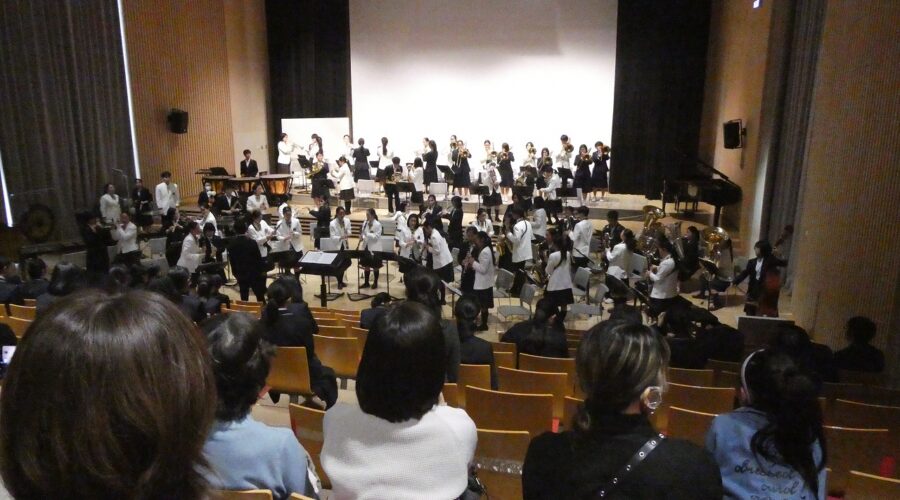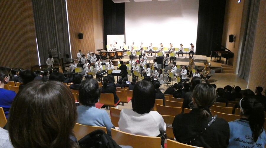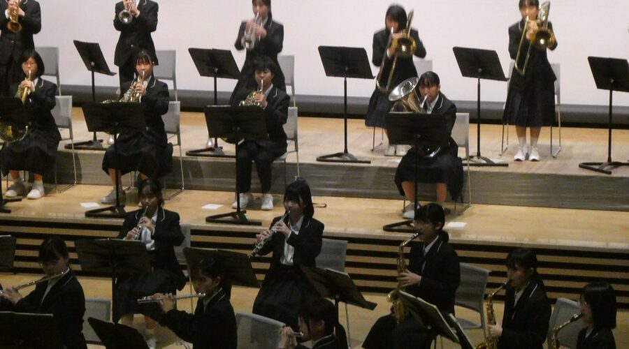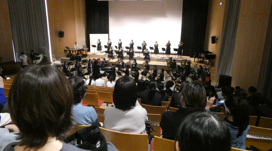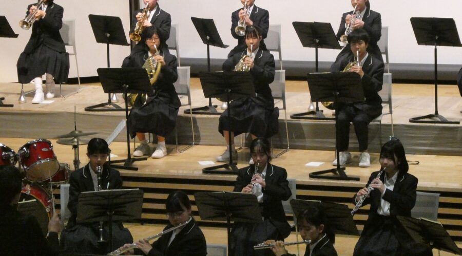 1月21日(日) 香椎校区青少年育成連合会主催の「ここがスゴイぞ!吹奏楽!vol.2」が昨年に続き九州高等学校コミュニティホールにて開催されました。九州高等学校吹奏楽部の皆さんの他、香椎1中、2中、3中の吹奏楽部も加わっての演奏会となりました。それぞれの学校の演奏の後、全学校合同演奏も行われ、キレッキレのダンスや手話を交えた合唱など練習の賜物の出来栄えに皆さん魅了されていました。 香椎小父母教師会の方々に引率されて参加した小学生も吹奏楽の素晴らしさを体験し、いつか自分もやってみたいと思ったことでしょう。