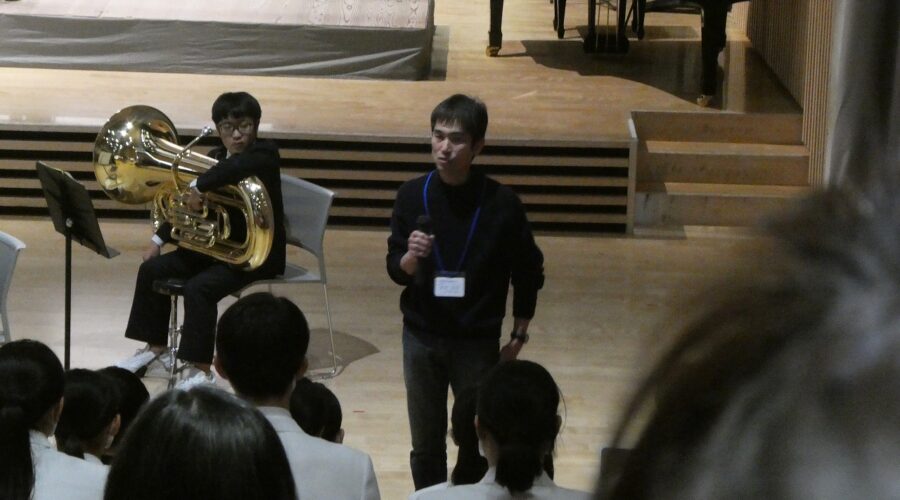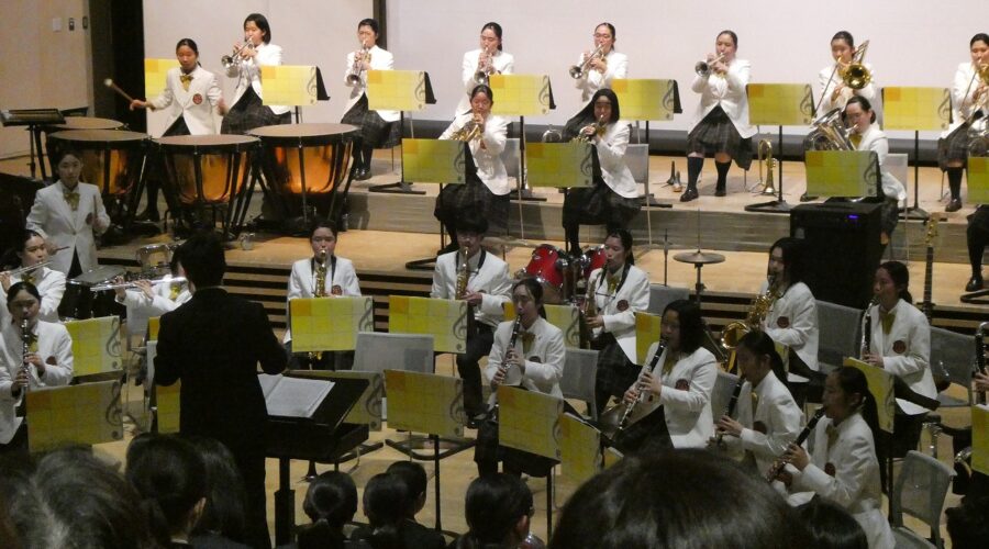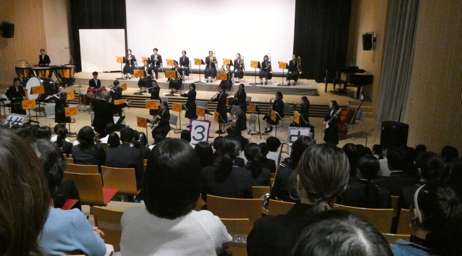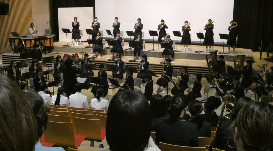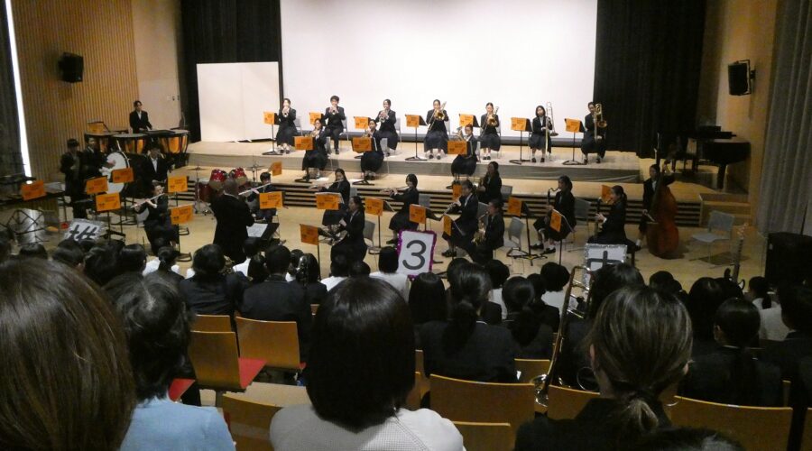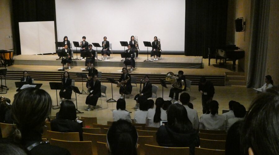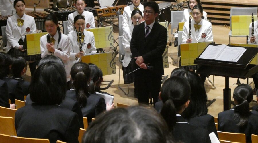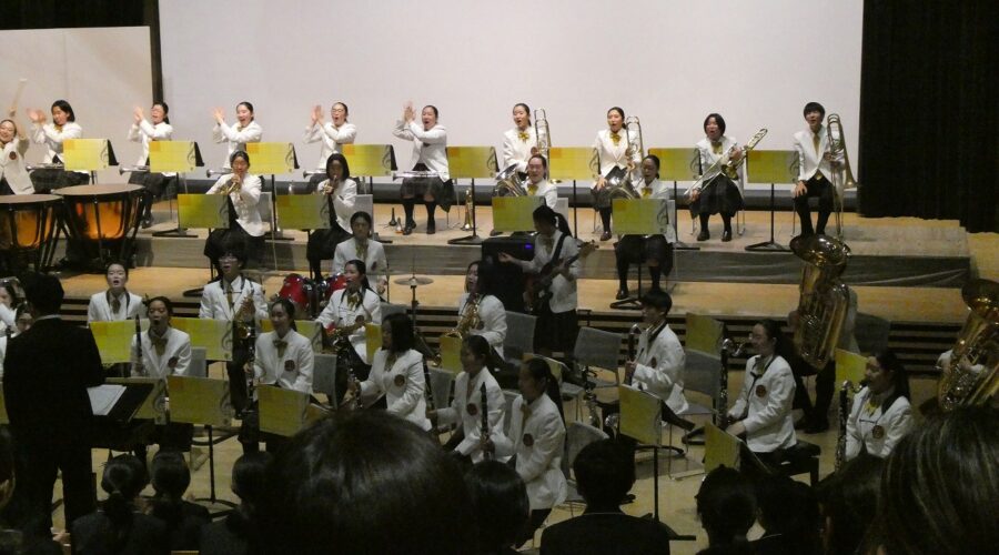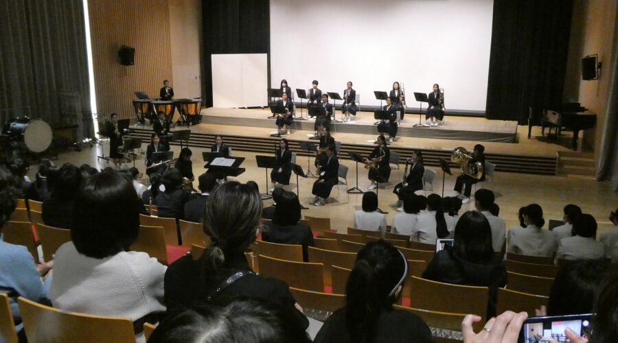 1月21日(日) 香椎校区青少年育成連合会主催の「ここがスゴイぞ!吹奏楽!vol.2」が昨年に続き九州高等学校コミュニティホールにて開催されました。九州高等学校吹奏楽部の皆さんの他、香椎1中、2中、3中の吹奏楽部も加わっての演奏会となりました。それぞれの学校の演奏の後、全学校合同演奏も行われ、キレッキレのダンスや手話を交えた合唱など練習の賜物の出来栄えに皆さん魅了されていました。 香椎小父母教師会の方々に引率されて参加した小学生も吹奏楽の素晴らしさを体験し、いつか自分もやってみたいと思ったことでしょう。