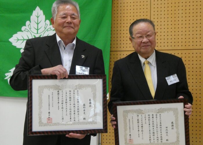 5月25日(土)香椎校区で活躍され昨年度で退任された方々、今年度より新たに就任された方々を迎えての令和6年度香椎校区歓送迎会は、約100名の参加者で大いに盛り上がりました。退任された町内会長・諸団体の会長には労いの言葉と温かい拍手が送られ、特に長年にわたって地域にご尽力いただいた、田代前自治協議会会長と藤野前館長には感謝状が贈呈されました。「今後も、共に協力し私達のコミュニティをさらに良いものにしていきましょう!」という藤田新自治協議会会長の挨拶に、香椎の街の発展の一助になりたいと思った私です。