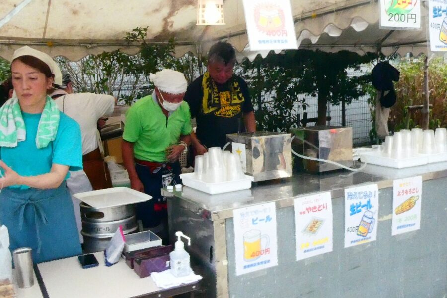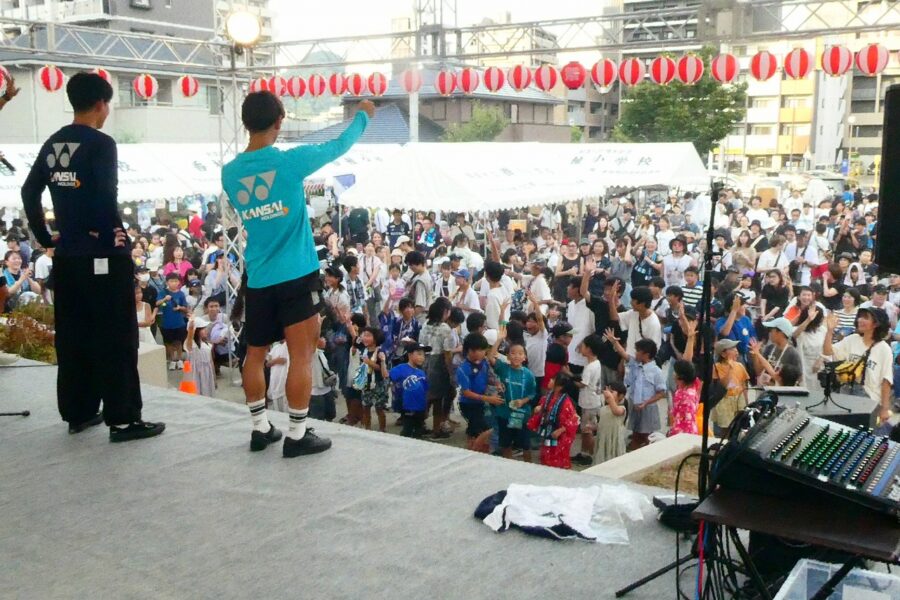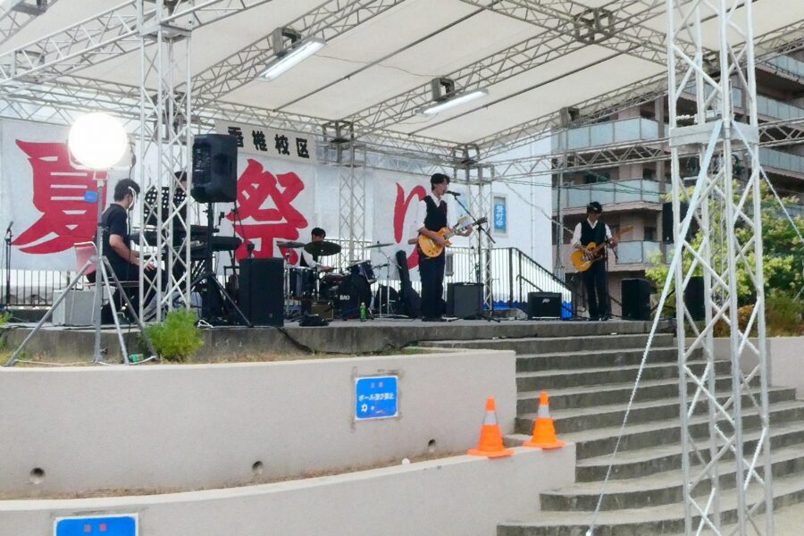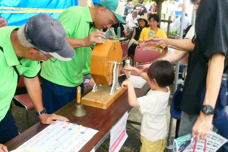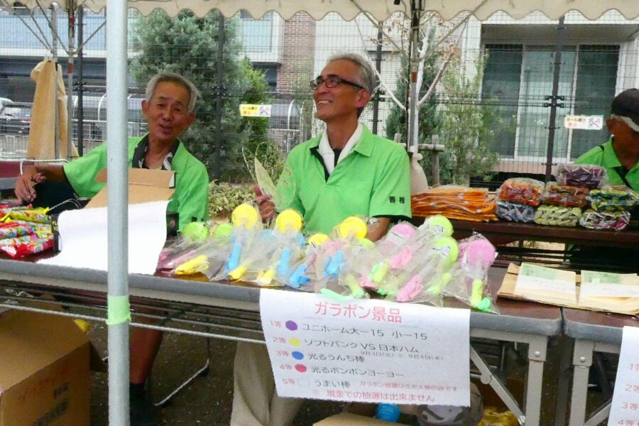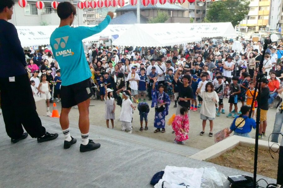会場の香椎駅前西公園は人・人・人と大賑わいで、最後のお楽しみ抽選会まで、皆さん大いに楽しんでいただけたことと思います。校区夏祭りは町内会、各種団体、香椎商工連盟、消防団などの協力で開くことが出来ており、この点についても重ねて感謝しております。