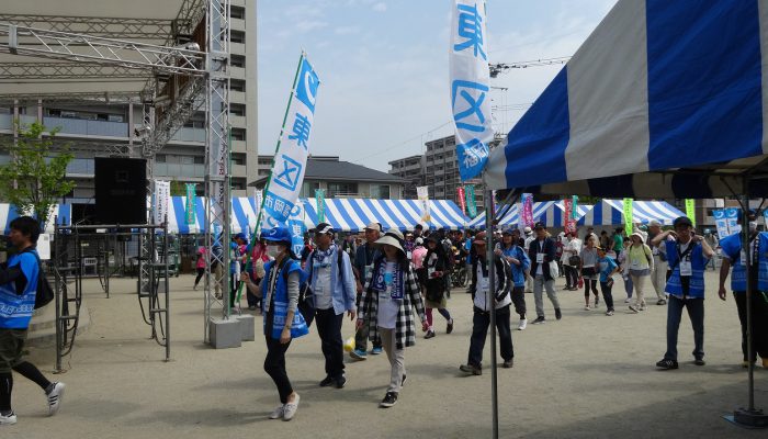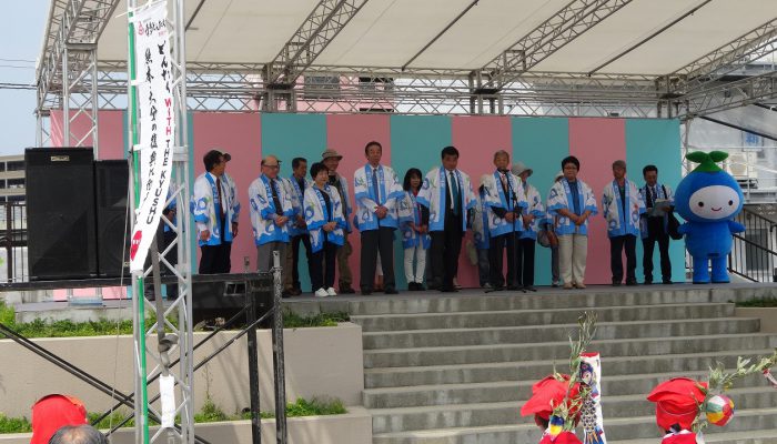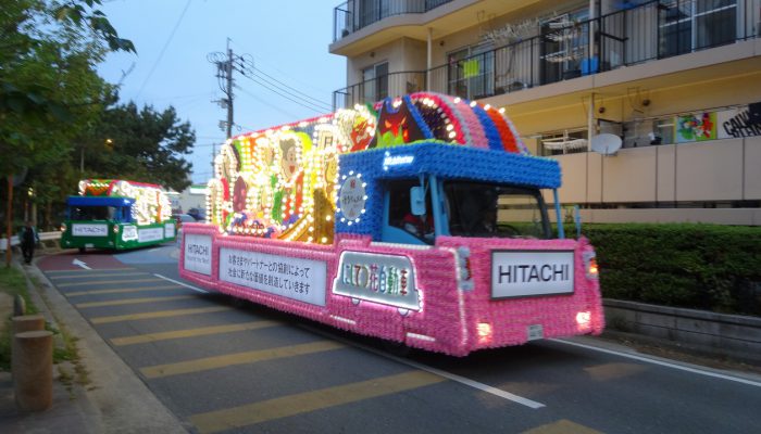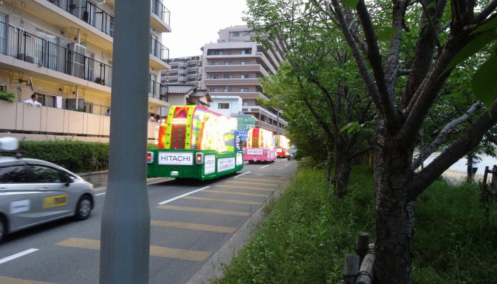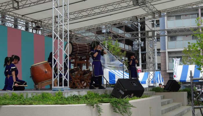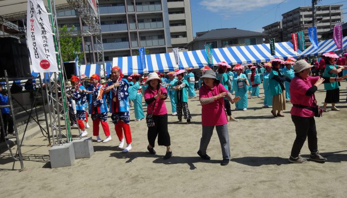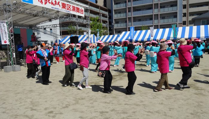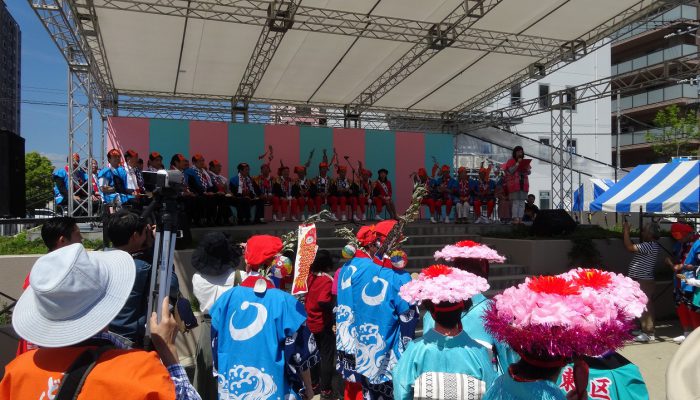2017年5月3日、4日 香椎駅前西公園にて「博多どんたく東区演舞台」が開催されました。初日の3日朝から良い天気でジンクス破れたりと思っていましたが、やはり、つきものの雨がやってきました。しかし、翌日は終日晴天に恵まれ、皆さん大いに楽しまれていました。5日には、かしいかえんから、花自動車も役目を終え基地へと戻っていきました。