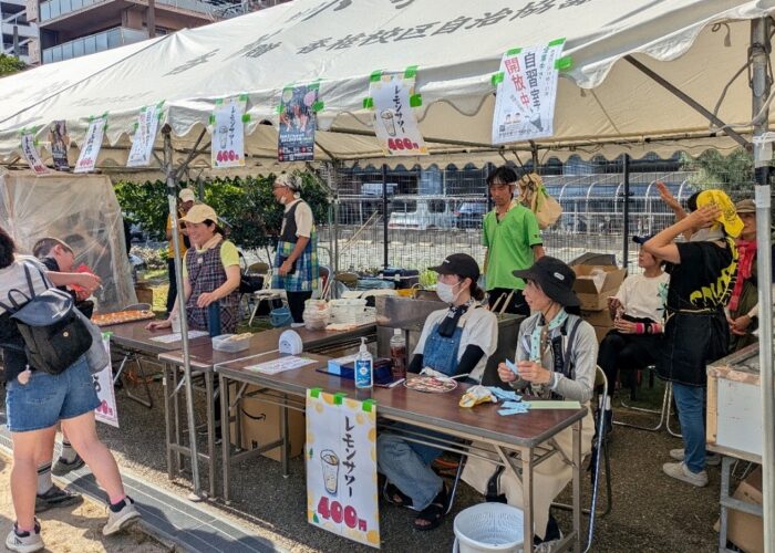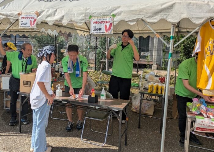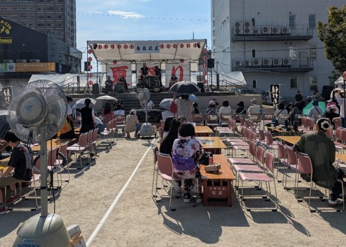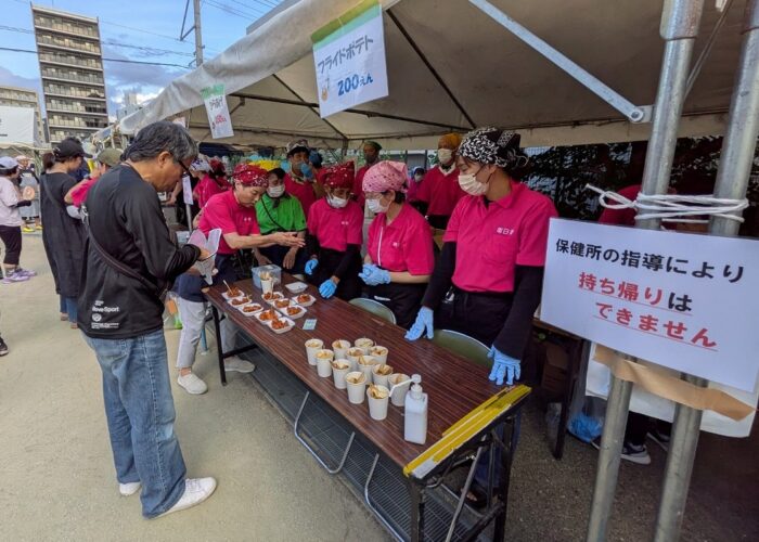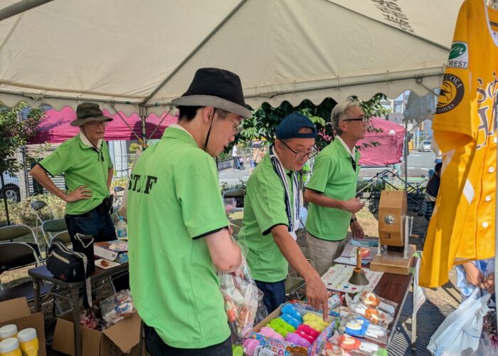 暑さ対策としてミスト付き扇風機数台を導入し、その前で涼を取る来場者の姿も見受けられ、役員一同設置してよかったと話し合いました。